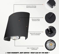 2 Watts 2 Ray Oval Up-Down Outdoor LED Outdoor Waterproof IP65 Exterior Wall Step Light Fixture Waterproof Lamp (Warm White, Black Body) 2 Way