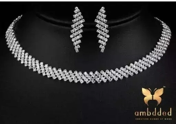 Ashley's Fascinating Beautiful Silver AD Diamond Choker Set With Earrings /New & Trending Necklace Jewellery Set. Western AD-Stone Jewellery Necklace/ Fancy Stone Silver Choker Jewellery