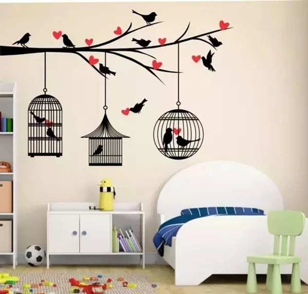 Name : Birds Cages Love' PVC Vinyl Wall Sticker ,SIZE 85 X 121 CM) Wall Stickers | Wall Sticker for Living Room -Bedroom - Office - Home Hall Decor | Beautiful Decorative