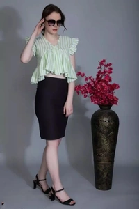 FN Store Women's Slub Cotton Casual Regular Fit Striped Crop Top Shirts Print Top Basic Summer Women Fancy Western Tops