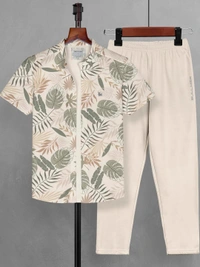 This co-ords consists of Shirt and Pants, Beige Shirt, has a shirt collar, short sleeves, Beige Pant. Comfy Lounge & Casual Wear for Men