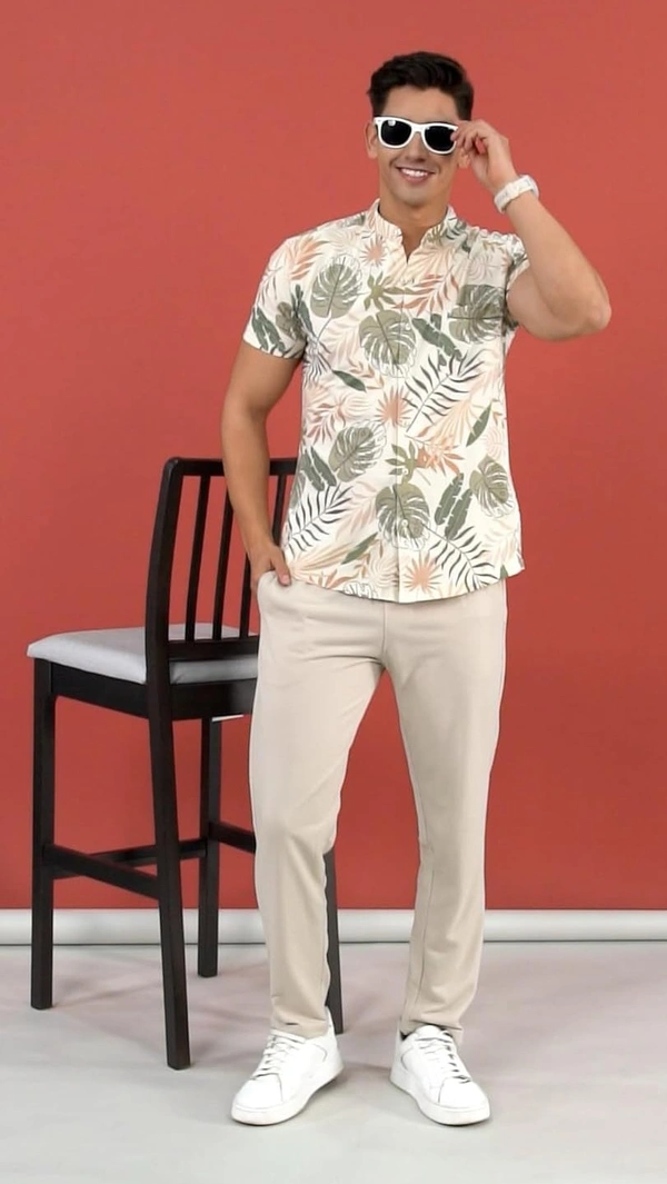 This co-ords consists of Shirt and Pants, Beige Shirt, has a shirt collar, short sleeves, Beige Pant. Comfy Lounge & Casual Wear for Men