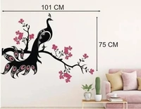 Wall Decoration - Peacock On Tree Branch - Flower - For Bedroom, Living Room ( ideal size on wall: 101 cm x 75 cm ),Multicolour